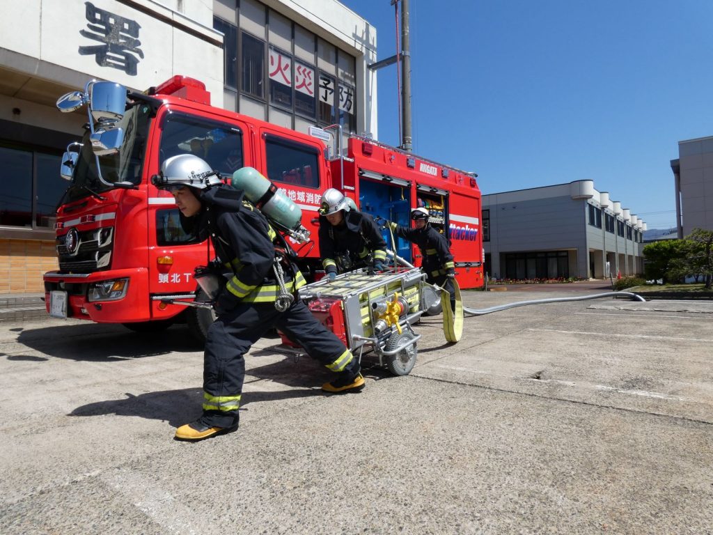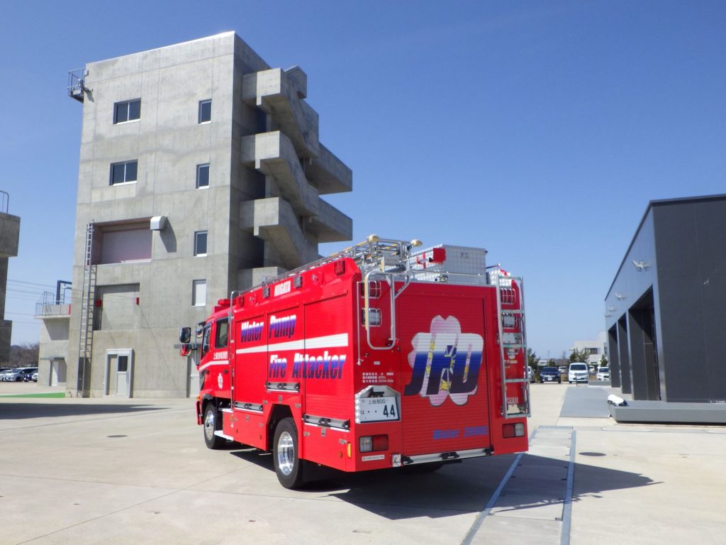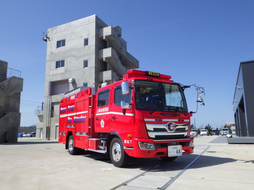 頸北消防署に水槽付きの消防ポンプ自動車を新たに配備しました。