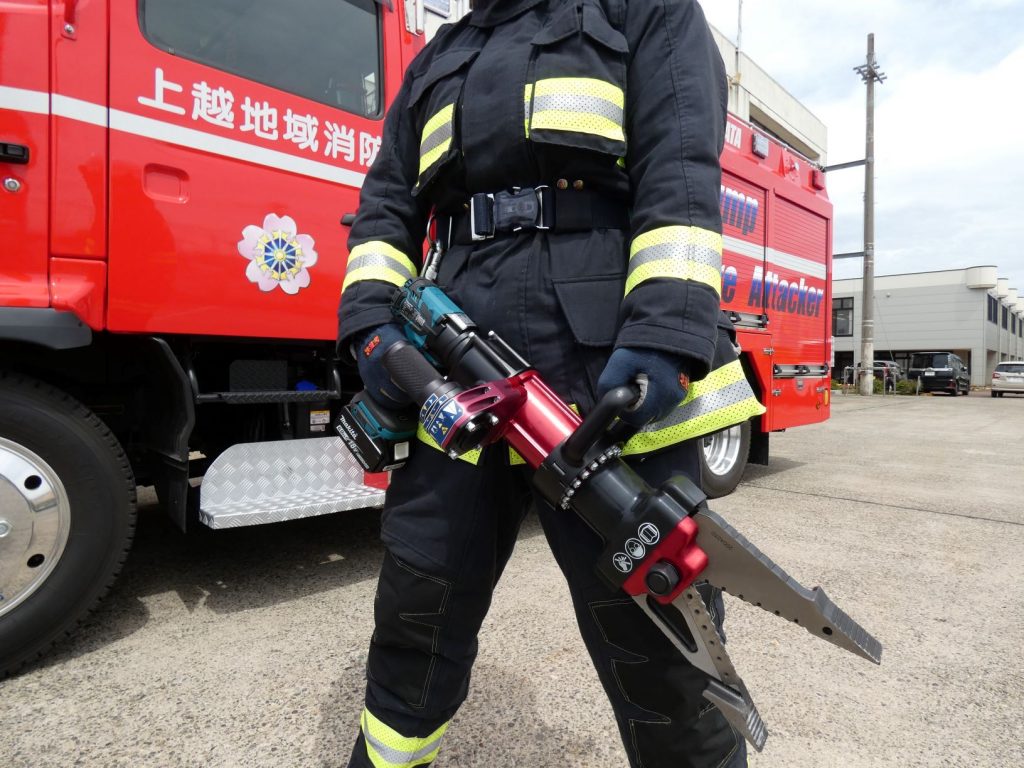 電動救助器具:展開力約7トン、最大展開幅30cm、最大切断力40トン、重さ約15kg