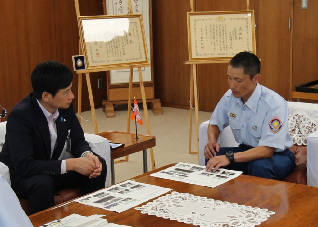 中川上越市長と岡田消防司令