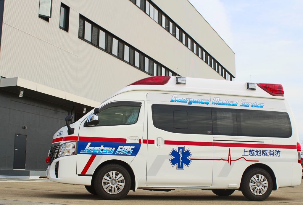 上越消防署の高規格救急自動車を更新しました。 車体のデザインは、救急現場に出場するスピード感と心臓の動きを表す心電図をイメージし、命をつなぐ象徴を表現しました。車両には最新の高度救命処置用資機材が積載されています。