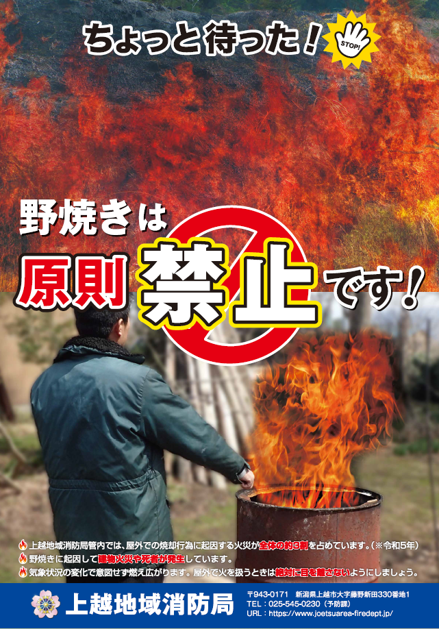 屋外における不要不急の火の取扱いは控えるようお願いします。